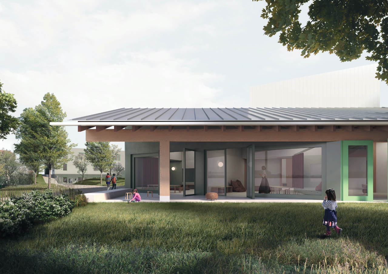 The garden and outdoor spaces that, in addition to hosting school activities, will act as a link between the Hub and the outdoors. The inclusion of the children’s centre in the Sforzacosta neighbourhood becomes an opportunity to reorganise all the existing spaces, including the external ones, in a functional way, in terms of accessibility and distribution, with the aim of defining a new educational hub that is a reference point and element for rethinking the master plan of a peripheral but strategic area for the city.