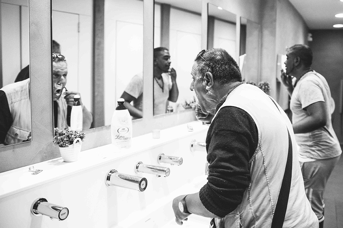 The showers, the bathrooms and the barber service are carried out by volunteers from various nonprofit organizations.