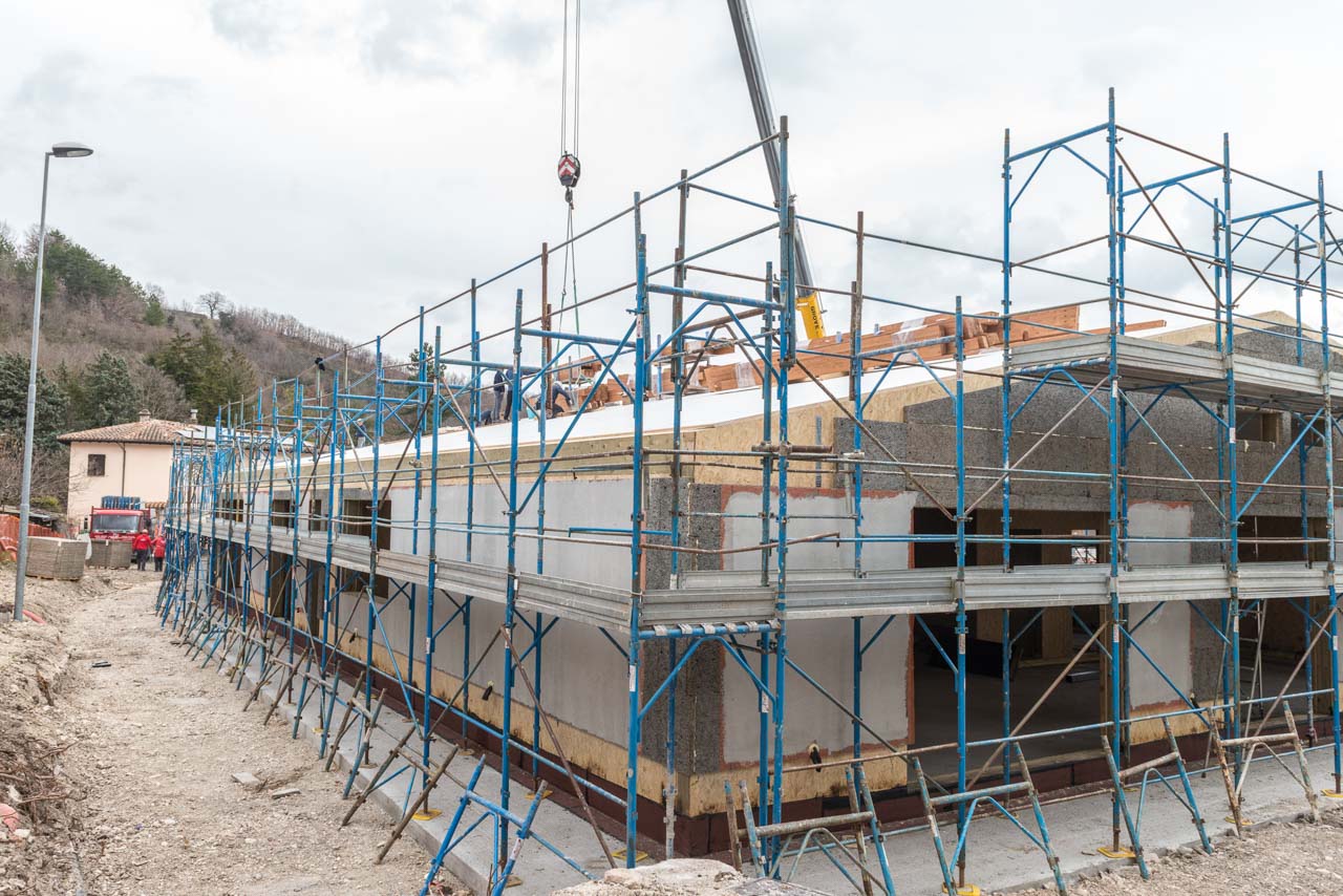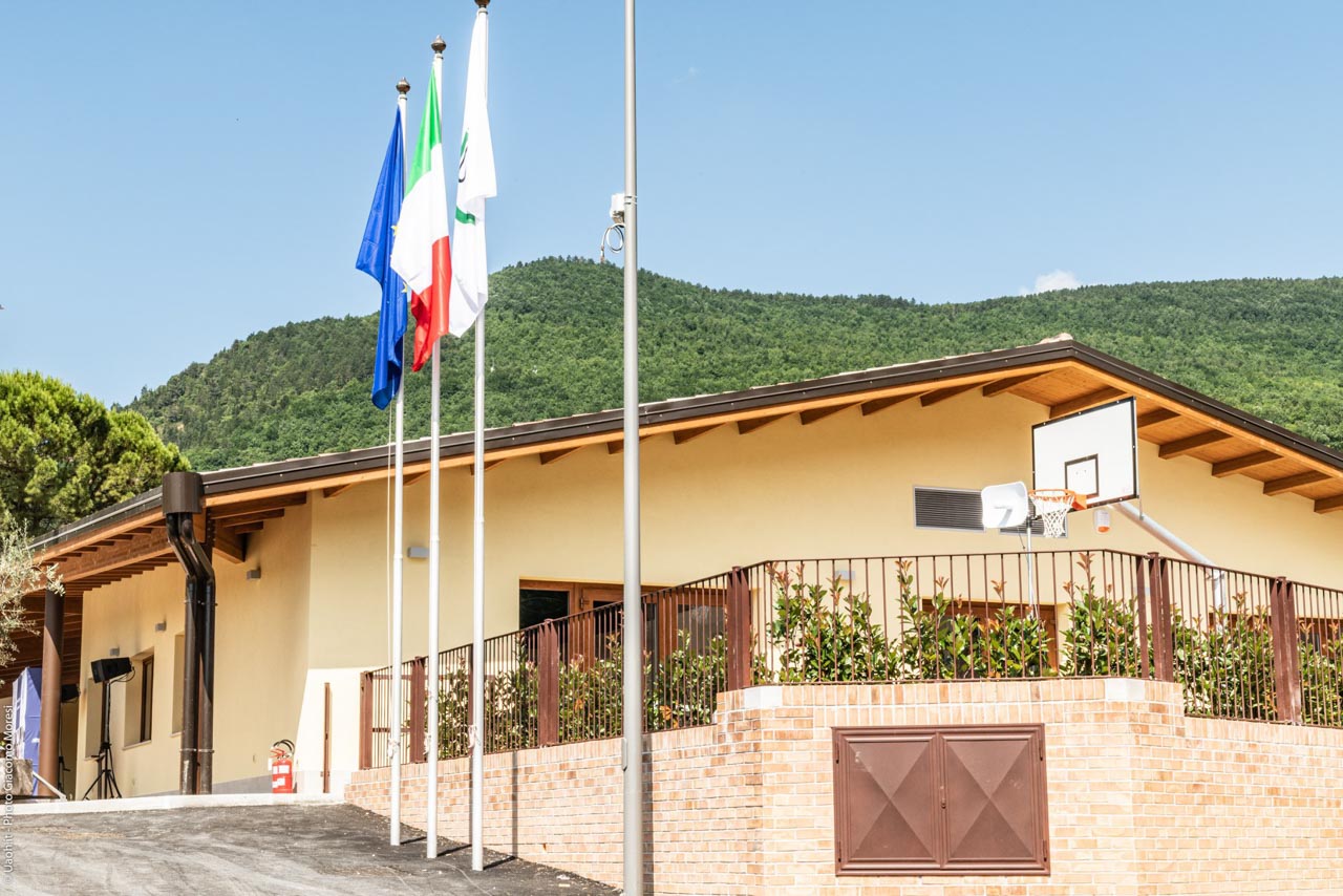 The project, whose beneficiaries will be pre-school and elementary students, saw the demolition of the remains of the old facility and the construction of the new building, which took place within a concerted action plan with the Special Commissioner for the Reconstruction and the Regional School Office (URS) of the Marche Region. The new permanent school was donated to the local administration as a “turnkey” project. As of today, in Muccia almost all households still live in container houses and children are still attending their classes in containers. 95% of the houses are not fit to live in, however, there is a strong willingness and determination to remain in the area, which overcomes the issues and challenges posed by having to reorganize one’s daily life. This is the reason ABF has decided to give a key reference point back to this community: the school for the students and their families which will be a safe and functional facility offering a space for both educational and community activities.