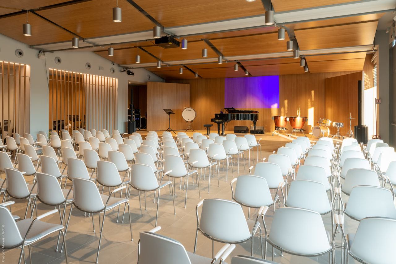 The project, which will benefit over 160 students, thanks to the agreement that is already in place with the Conservatory of Fermo, allows the new building to hold not only the lessons for enrolled students, but to also act as a campus for the conservatory, thereby taking on an even more important role within the area. The Municipality of Camerino, local associations, the University, music-centered high schools, and the Conservatory of Fermo are all involved in the project, with the latter exceptionally already granting a long-term agreement.