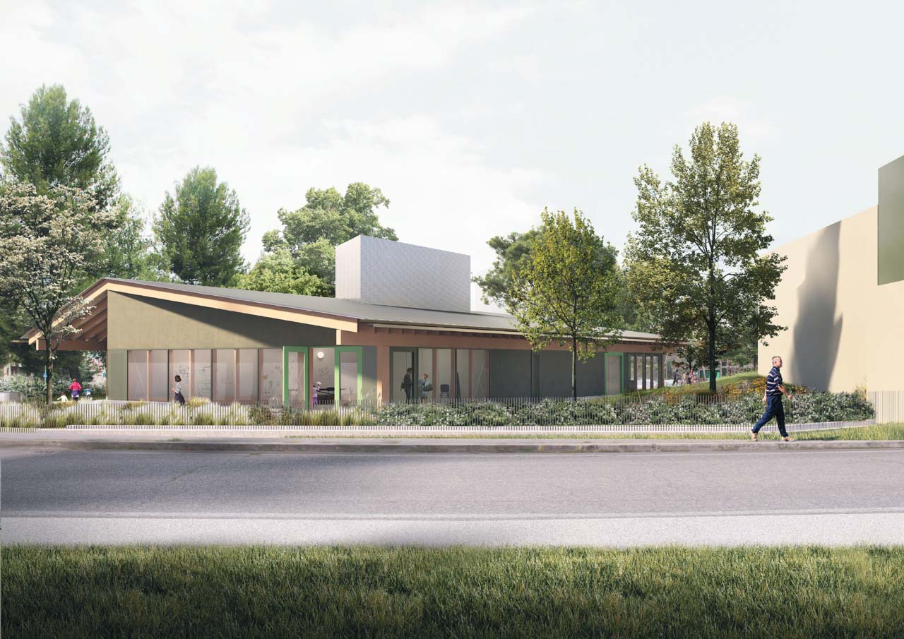 The garden and outdoor spaces that, in addition to hosting school activities, will act as a link between the Hub and the outdoors. The inclusion of the children’s centre in the Sforzacosta neighbourhood becomes an opportunity to reorganise all the existing spaces, including the external ones, in a functional way, in terms of accessibility and distribution, with the aim of defining a new educational hub that is a reference point and element for rethinking the master plan of a peripheral but strategic area for the city.