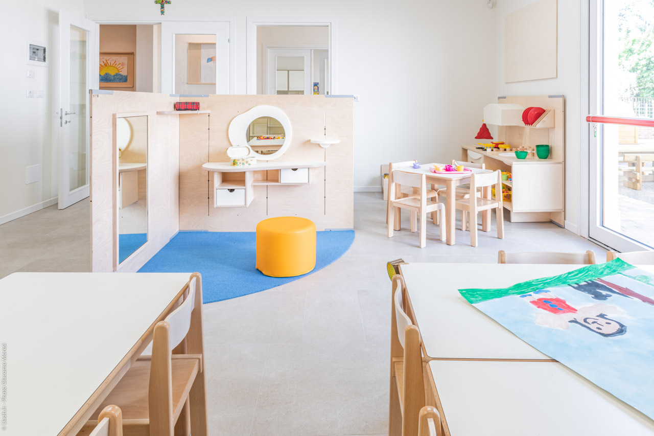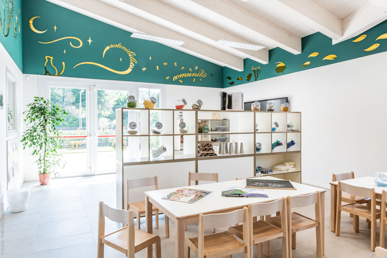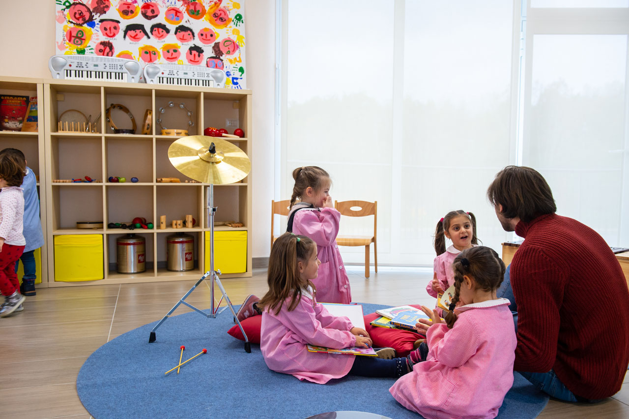 To this end, the Art & Music Labs project includes the integration of the figure of the atelierista within the educational staff, in addition to expanding and maintaining the laboratory spaces. The awareness behind this is that it is the natural tendency of children to share images, thoughts, and emotions through communicative means based on complex forms. These must be supported through relational and spatial environments rich in opportunities for exploration, building, and sharing. It is within this framework that the atelierista designs experiences that are incorporated within the overall teaching plan prepared by the teachers. The atelierista works alongside a pedagogical coordinator, who supports the integration of their activities within the educational and teaching activities at the center.