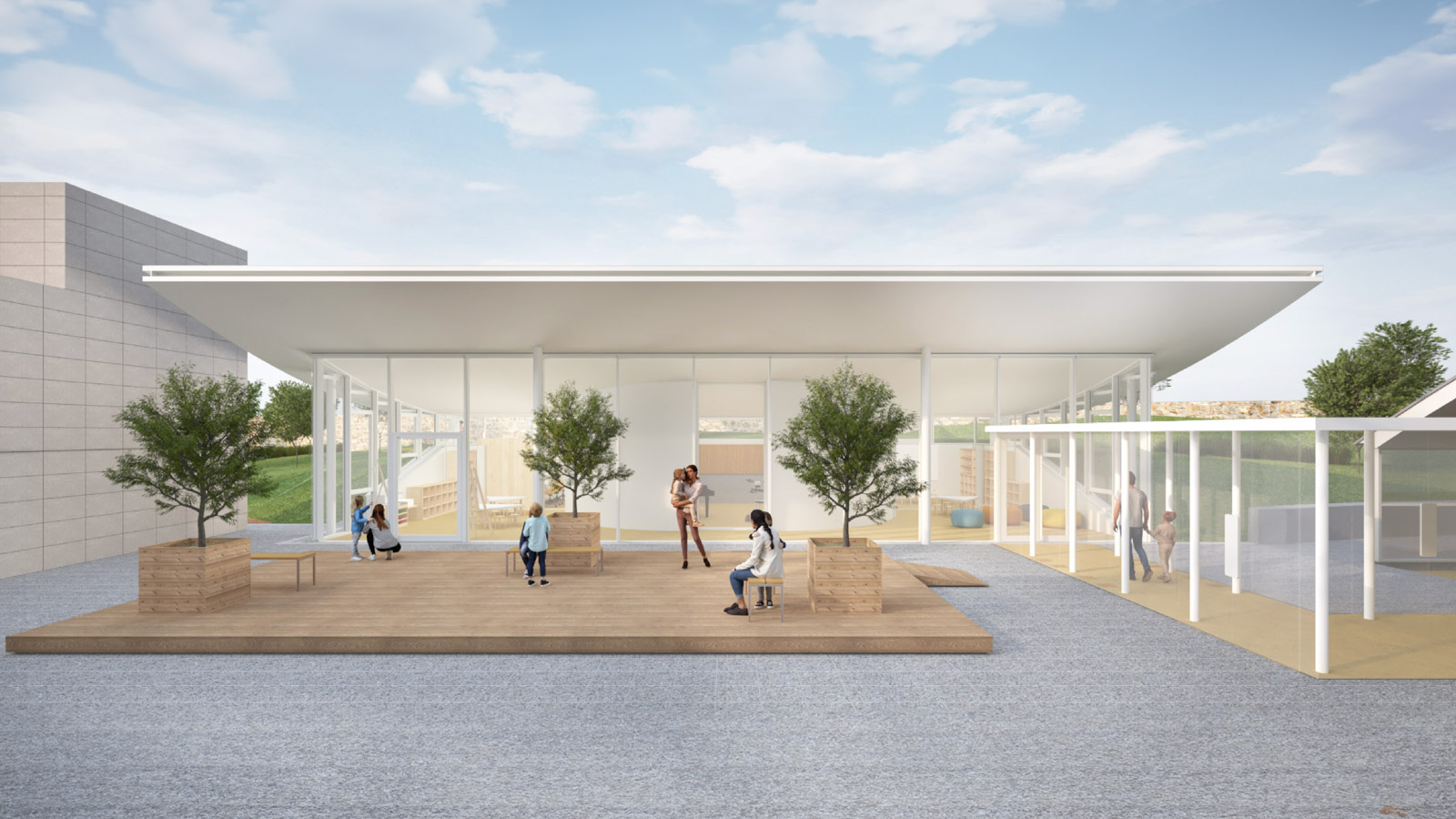 Part of the perimeter of the structures that make up the Meyer Hospital complex, the Center was conceived as a floating leaf, suspended between the sky and the grass. Its extensive glass facades, framed by the light structure designed by Alvisi Kirimoto, offer an uninterrupted view of the recently finished sensory gardens, including a school vegetable garden. The goal is to provide a peaceful, enriching, and stimulating haven, immersed in nature.