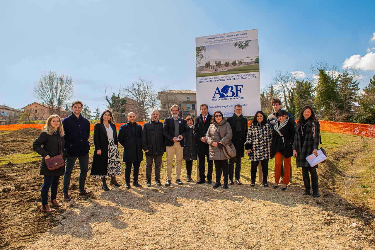 “We could say that today is truly the beginning of a new spring for San Ginesio given the moment we are all sharing together. First and foremost, I feel the need to give a special thanks to the Special Commissioner for Reconstruction, Giovanni Legnini, because it is thanks to his determination, expertise, and commitment that a Special Order was issued to us that has finally cleared a serious situation that had been holding us back for too long. I also find myself unable to truly express the gratitude and affection that links me to the Andrea Bocelli Foundation and dear friends, Laura Biancalani, ABF President, and Paolo Bianchi, with whom we instantly established a relationship of esteem, friendship, and mutual collaboration. The professionalism of the team made available by ABF for the project will allow San Ginesio to have a highly innovative and unique school, thereby making the town attractive within the province, region and beyond. These are the real building blocks that allow us to form a future – yet clear – vision for the rebirth of our territory from a social, economic and cultural perspective: the new school will attract many new students thanks to its design, who will restore vitality to the village and repopulate it full time thanks to the establishment of a boarding school. Furthermore, the reorganization of services based on bolstered sharing between all the main actors involved will create a strong school that is able to have a decisive impact on the future of our communities. I would like to extend one last thanks to all the staff of the municipal technical office and to the people of San Ginesio for the patience they have had to bolster after truly difficult times”, Giuliano Ciabocco, Mayor of San Ginesio.