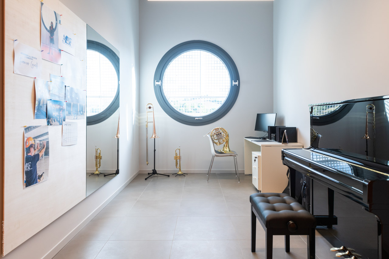 The project, which will benefit over 160 students, thanks to the agreement that is already in place with the Conservatory of Fermo, allows the new building to hold not only the lessons for enrolled students, but to also act as a campus for the conservatory, thereby taking on an even more important role within the area. The Municipality of Camerino, local associations, the University, music-centered high schools, and the Conservatory of Fermo are all involved in the project, with the latter exceptionally already granting a long-term agreement.